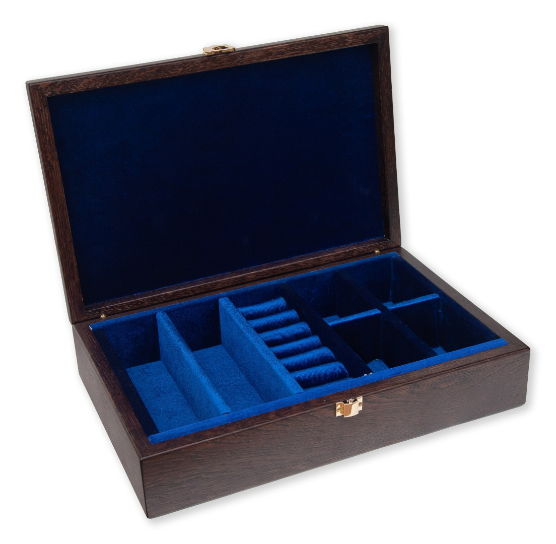 Lumière je nádherný drevený organizer vyrobený z masívneho dubového dreva, moreného na tmavý odtieň, ktorý mu dodáva elegantný a sofistikovaný vzhľad. Tento organizér je navrhnutý pre tých, ktorí ocenia kvalitné a štýlové uskladnenie svojich cenností.
