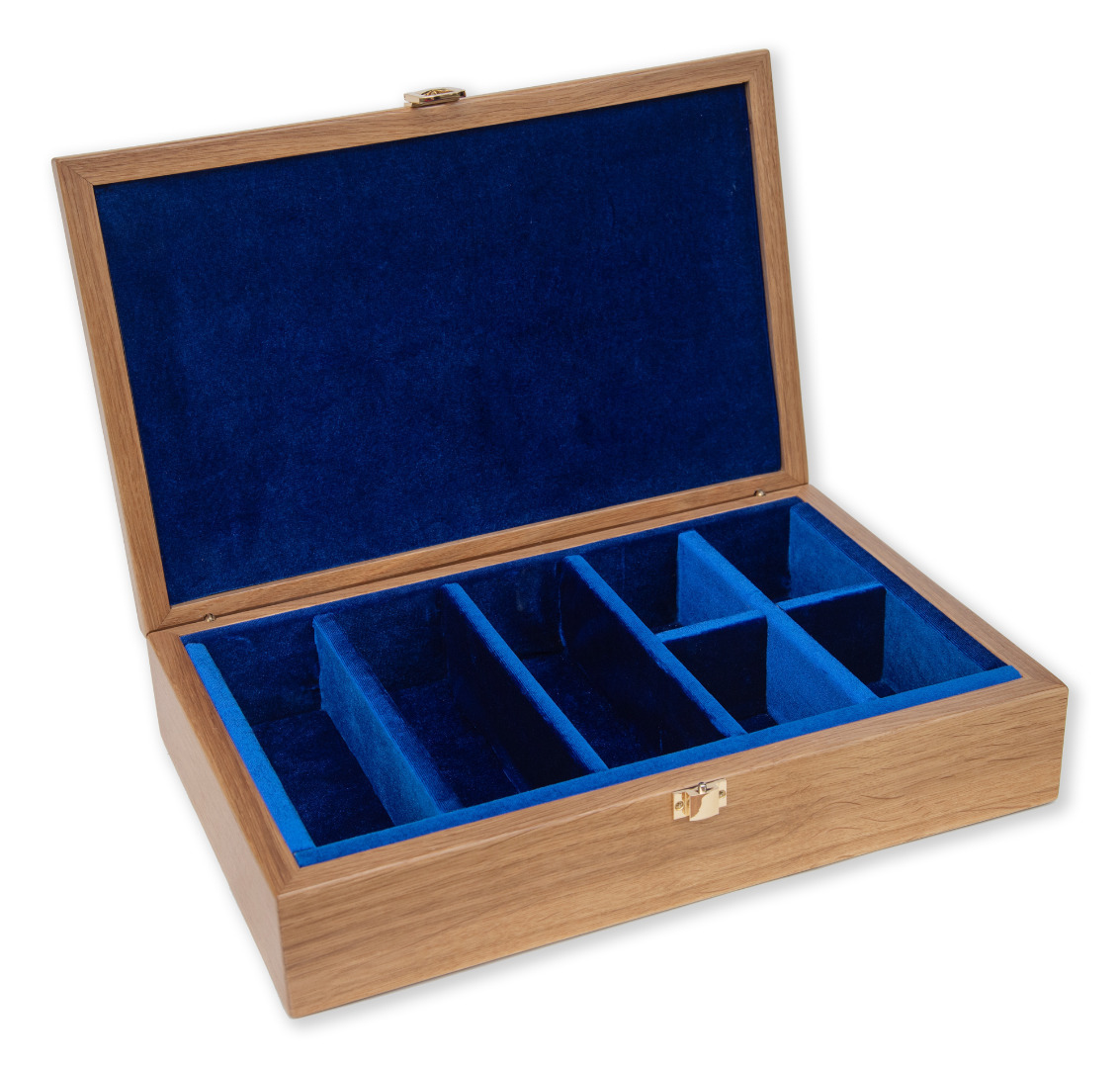 Prírodný odtieň dubového dreva spolu s modrou zamatovou vystielkou dodáva organizeru nadčasový a sofistikovaný vzhľad, ktorý sa perfektne hodí do každého interiéru. Luminis je ideálnym riešením pre tých, ktorí si cenia kvalitné remeslo, elegantný dizajn a funkčnosť.