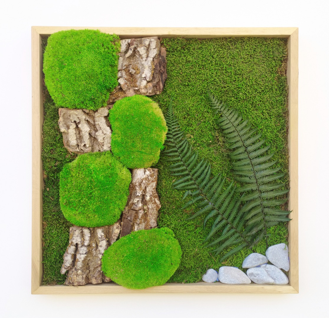 Machové obrazy a drevené hodiny