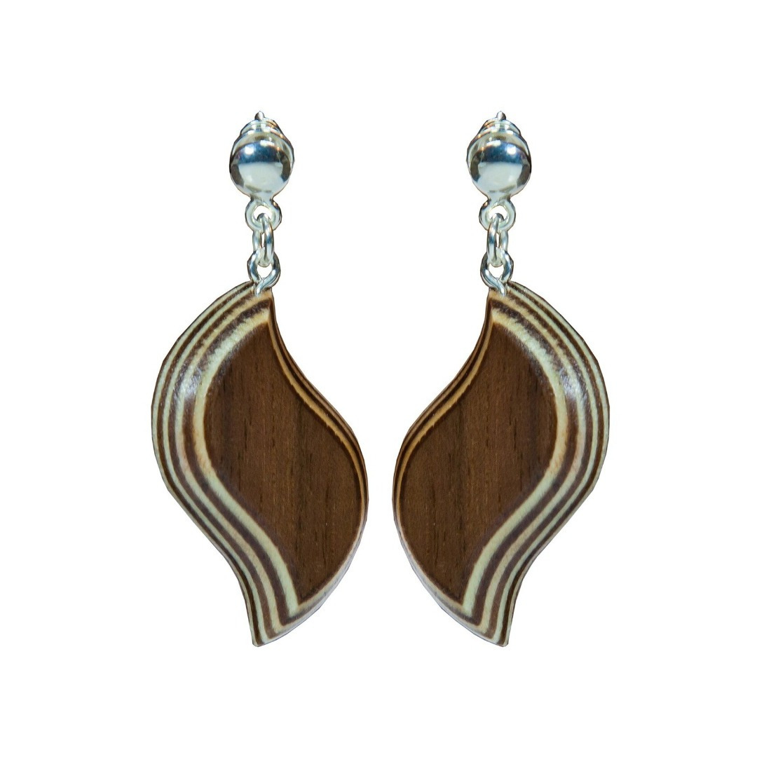 Očarujúca ladnosť kriviek so súhrou farieb dreva sa snúbi v jedinečnom prírodnom šperku. Vrstvovo lepené dreviny javor a čierny orech sú dokonale ručne opracované a ošetrené kvalitným lakom, ktorý odolá aj vlhkosti. Uchytenie náušníc je z čistého striebra Ag 925/1000