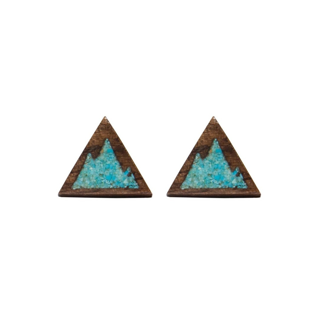 Trojuholník ukazuje smer a symbolizuje silu. Avšak tento šperk ukrýva ešte inú myšlienku. Je tam vášeň pre krásu a našich hôr. Tieto ľahučké a elegantné náušničky určite ocenia mnohé žienky (horalky). Sú vyrobené z čierneho orecha, drveného tyrkysového kameňa a striebra Ag 925/1000