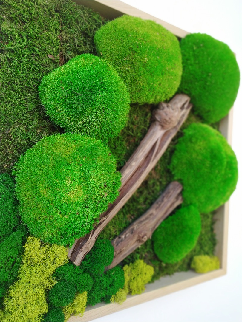 Machové obrazy a drevené hodiny
